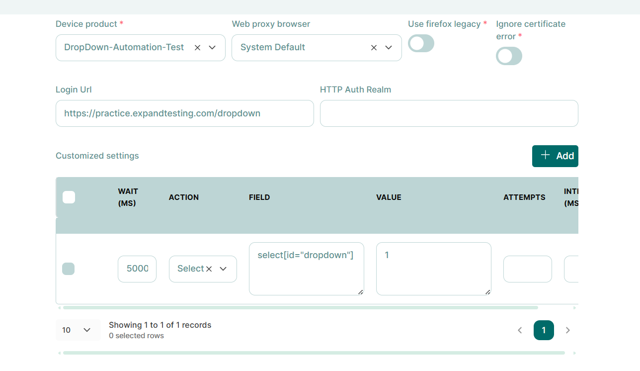 1. For the VNC executor to login using the credential data, at Customized settings click icon “+” and configure the fields according to the elements of the web screen to be accessed.