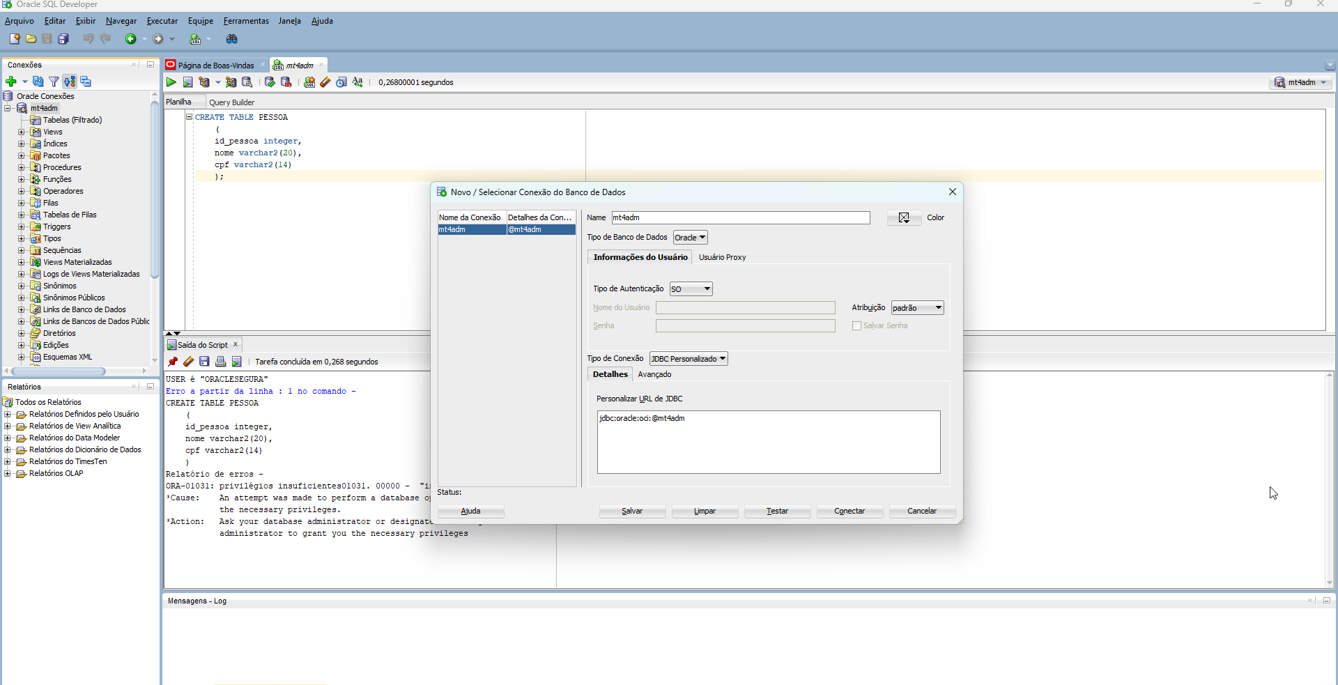 Veja que o “mt4adm” vem do identificador do arquivo tnsnames.ora