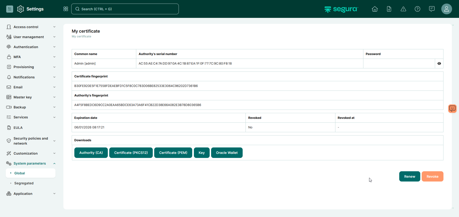 Uma vez veito isso, o usuário na interface web poderá gerar wallets usando a opção User options > My certificate > Oracle Wallet > Gerar a wallet e esperar uns minutos > Voltar no mesmo menu e fazer download do arquivo da wallet.zip