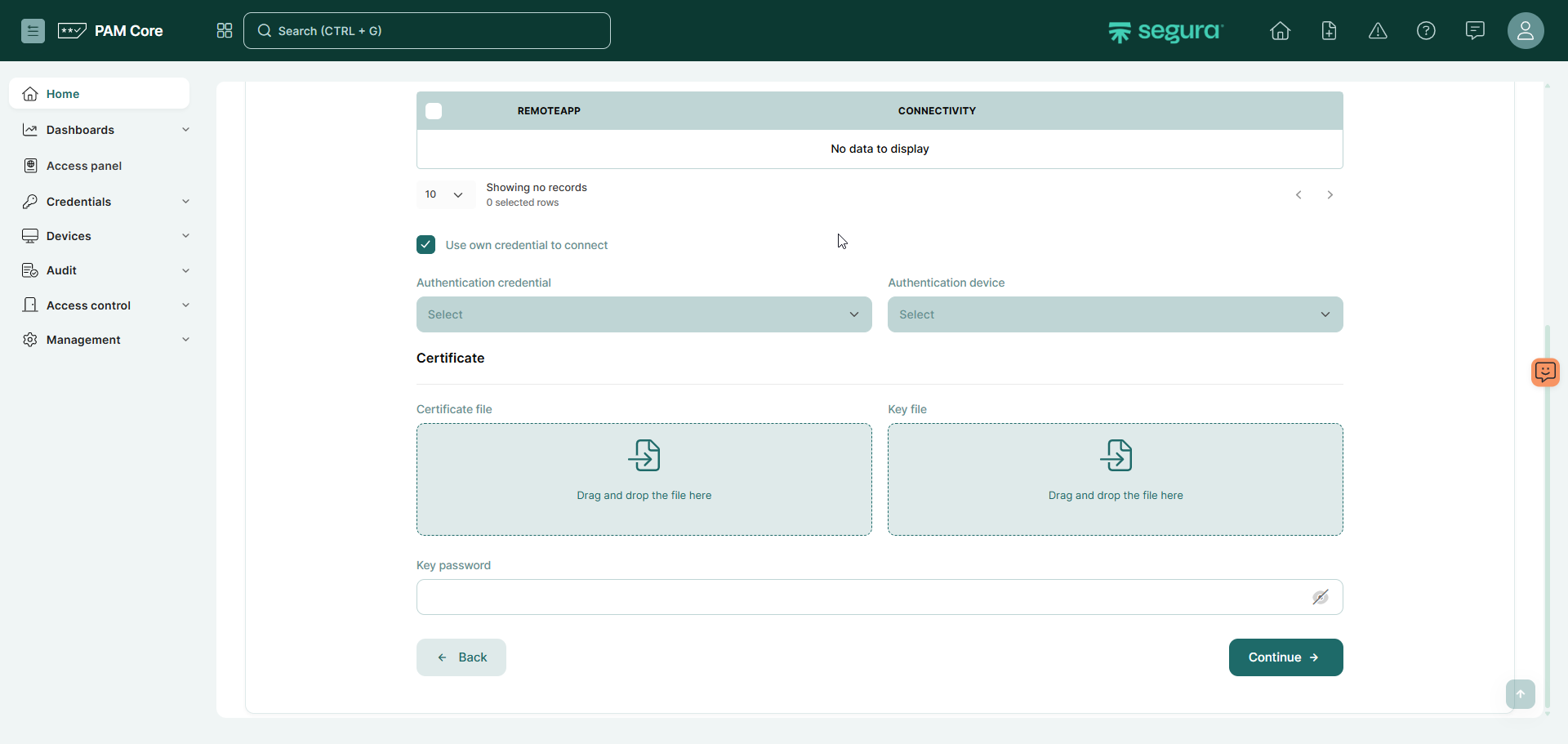 Para isso, primeiro configura-se uma credencial e dispositivo com orapki (binário necessário) e credencais necessárias para criar uma wallet, na tela a seguir do PAM, campo System Parameters > Global > Application > Oracle wallet automation credential: