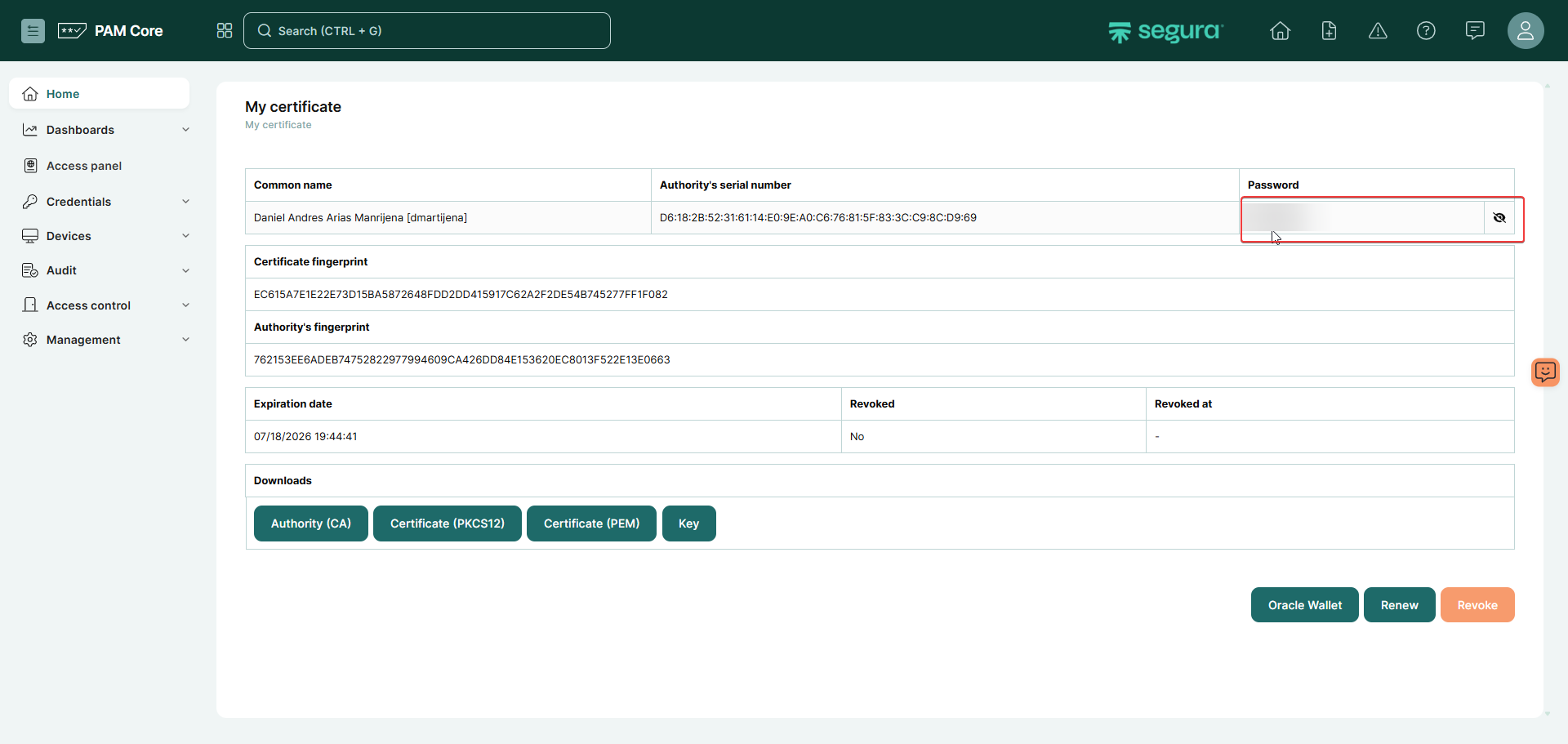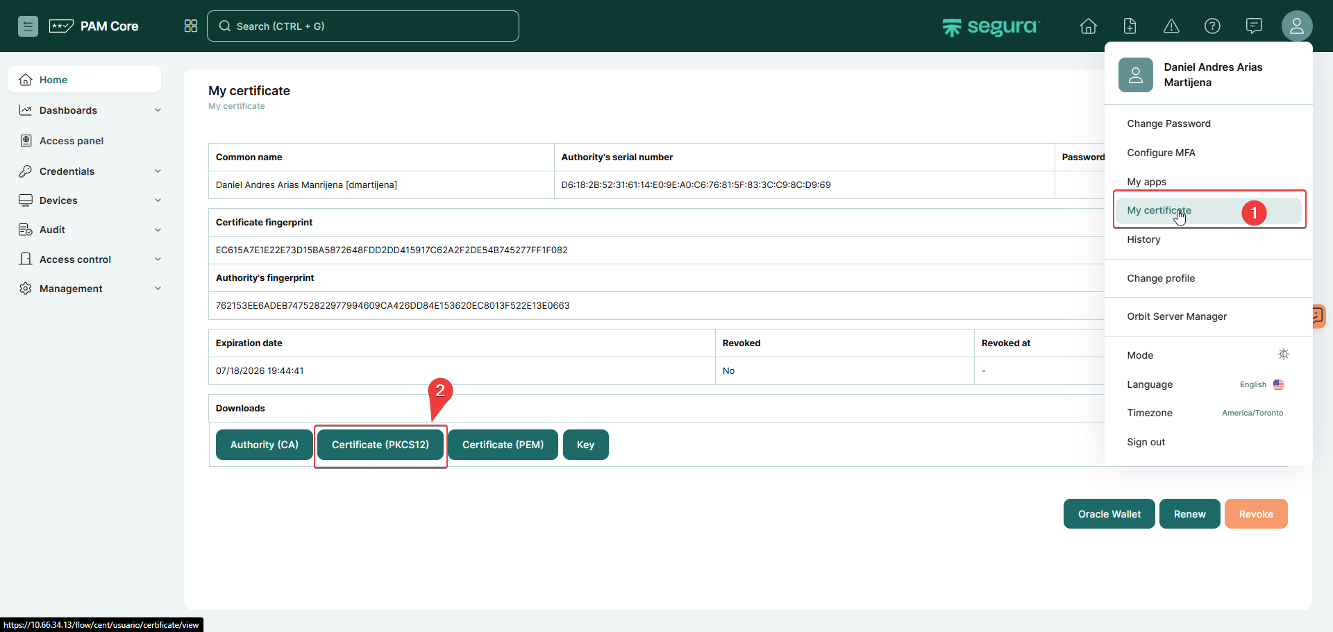 2.3) Criar uma wallet com o certificado do usuário do PAM;