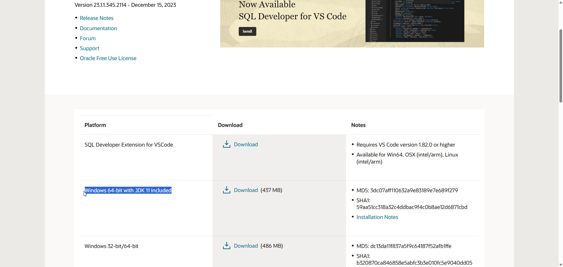 Oracle SQL Developer Downloads 23.1.1
