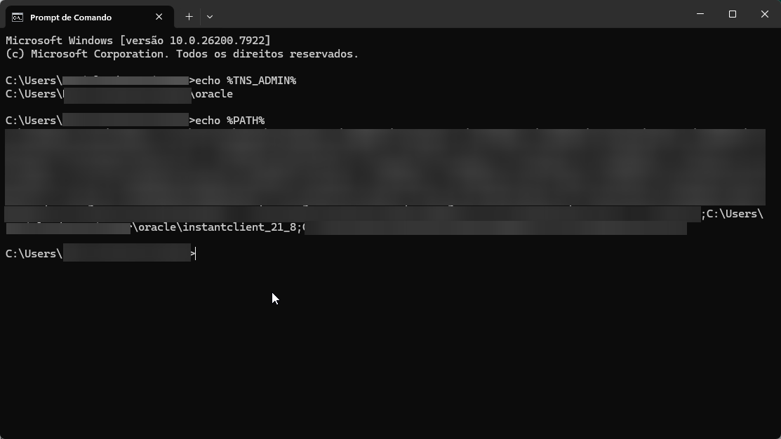 Comandos via cmd para validar variáveis de ambiente: