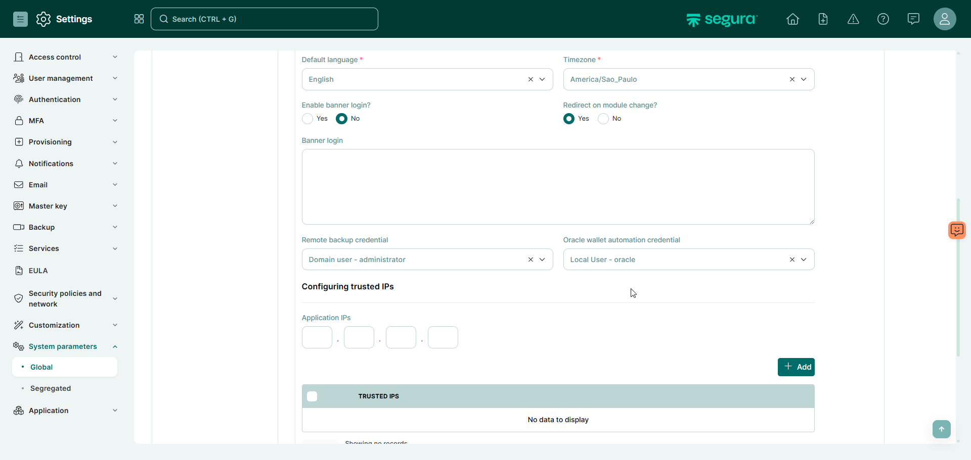 2) Configuração na interface web do Segura: