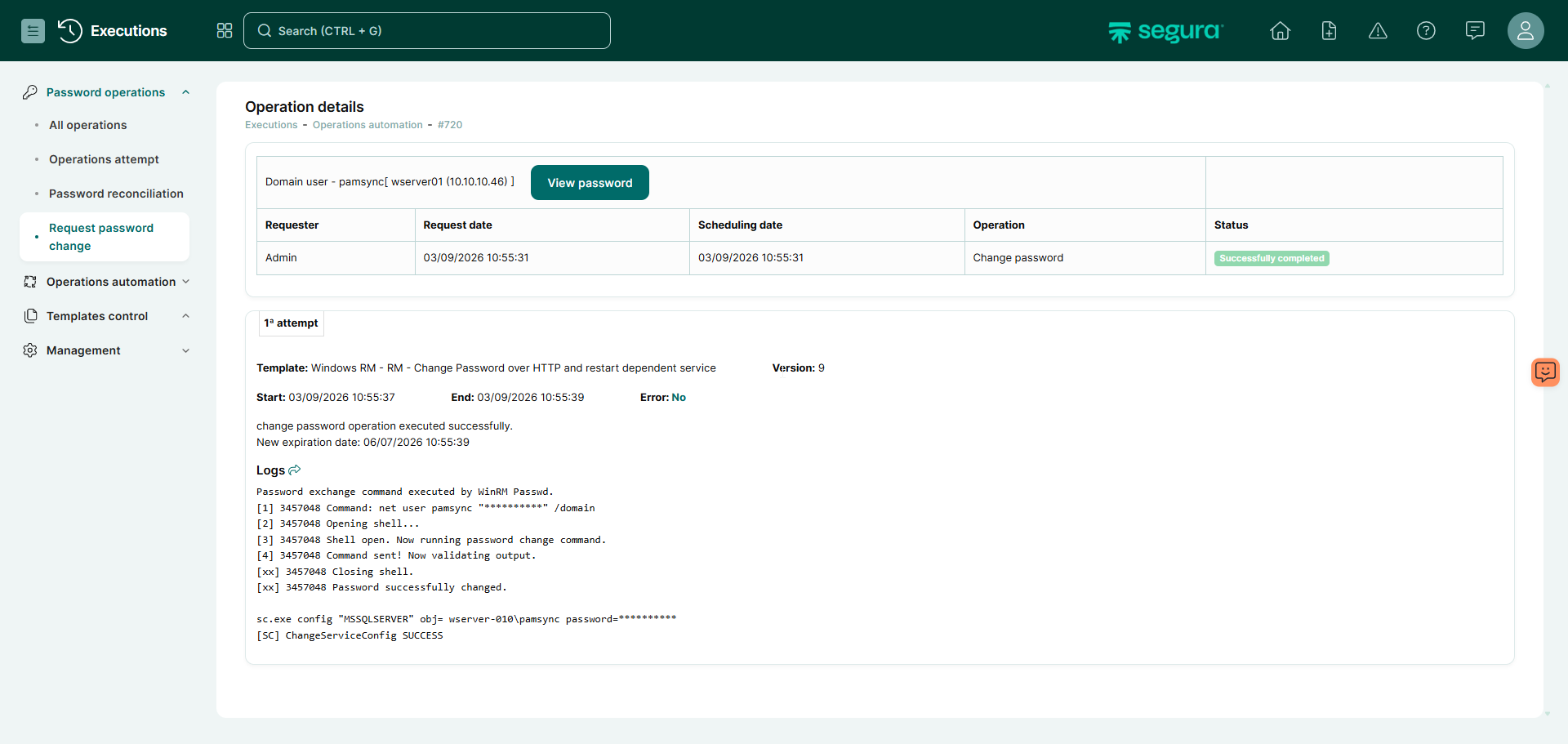 - Segura PAM solution that supports WinRM execution and template variables