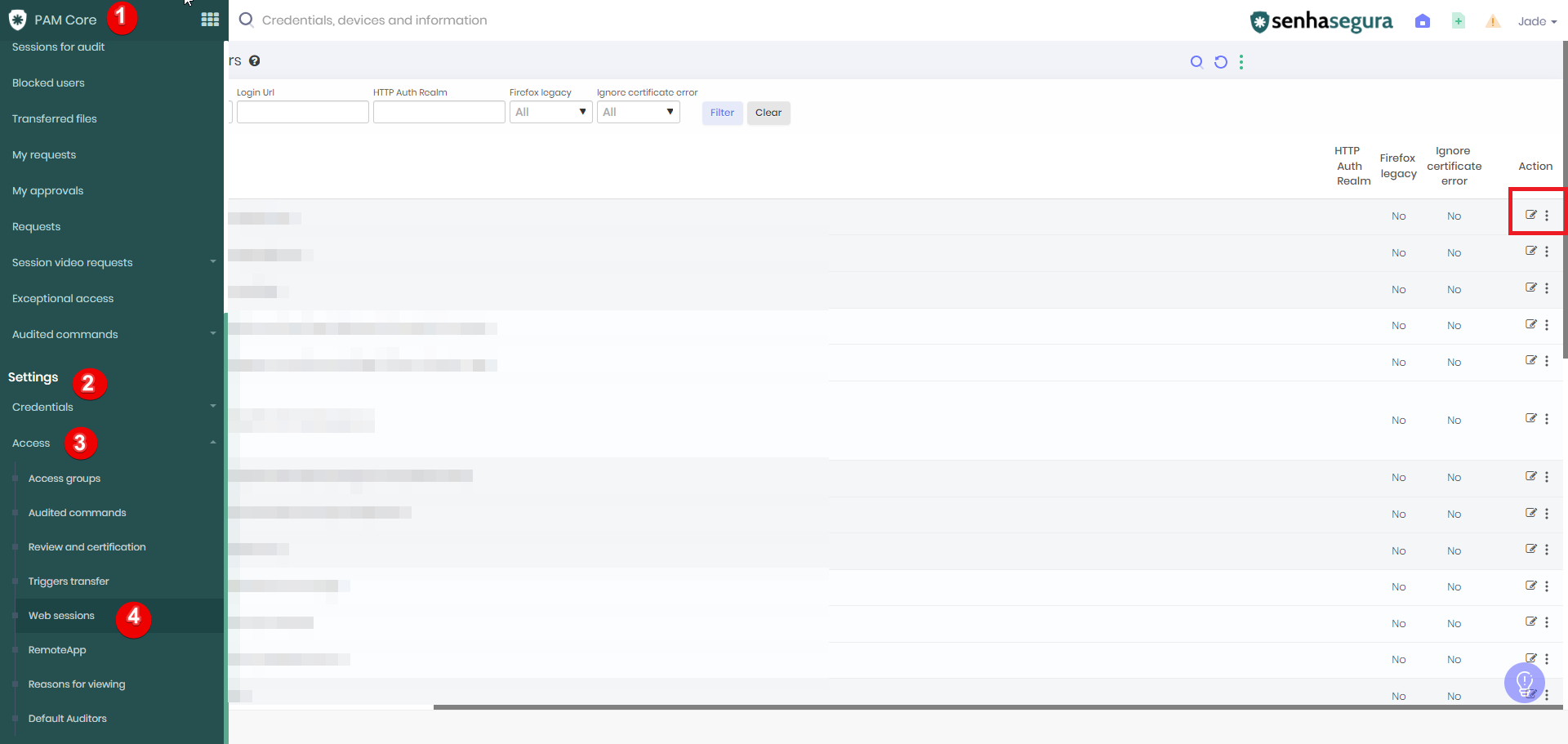 As of version 3.29 of senhasegura, the option "Ignore certificate error" was introduced in the web session parameters, which must be considered when performing automations. Follow the steps below to enable this option:- Access Web Automation: