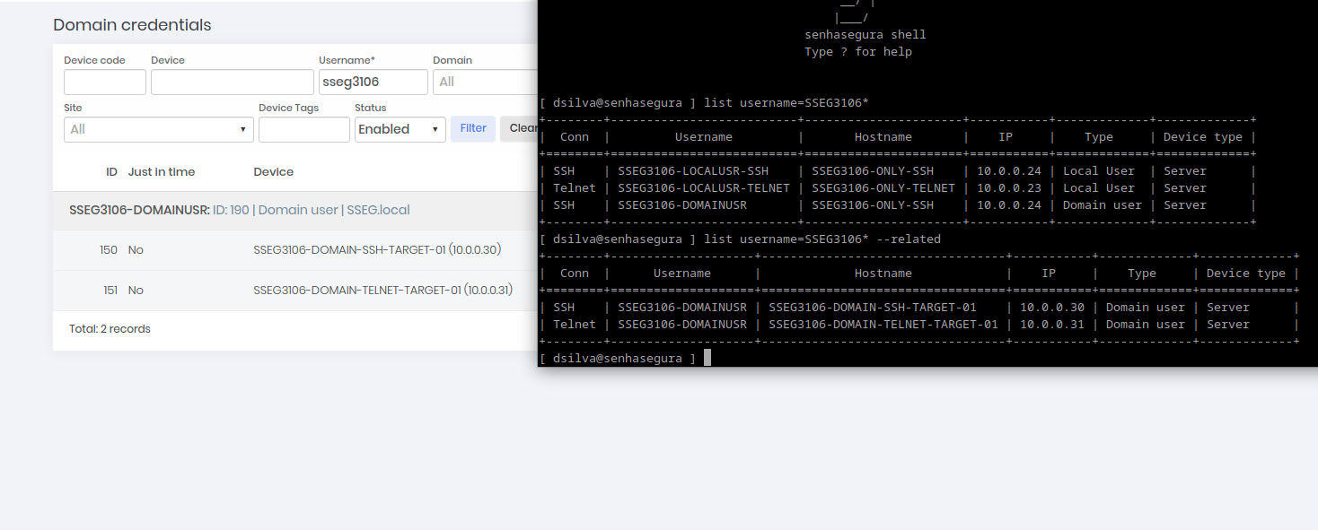 In order to list all devices associated with a particular domain credential, the following command must be used: